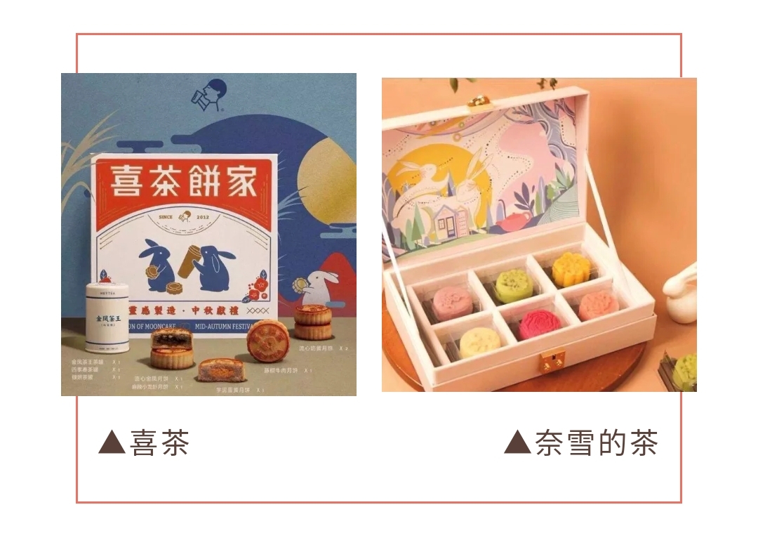喜茶和奈雪,每年中秋節(jié)都會打上一場“月餅大戰(zhàn)”,圍繞著月餅創(chuàng)新、口感,甚至新奇包裝等,均為喜茶和奈雪帶來了不小的話題度。