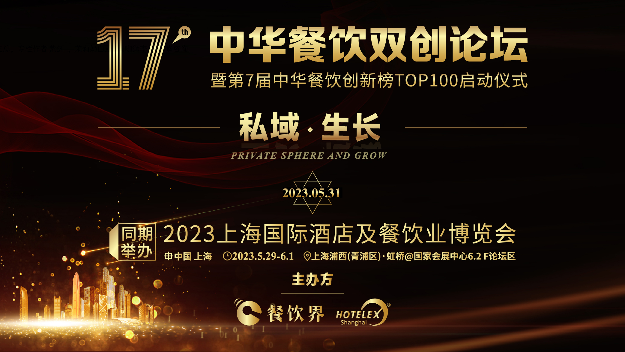 2023年5月31日,餐飲界新媒體持續(xù)打造“中華餐飲雙創(chuàng)論壇”IP,將于上海國家會(huì)展中心舉辦“私域-生長”暨2023第17屆中華餐飲雙創(chuàng)論壇。