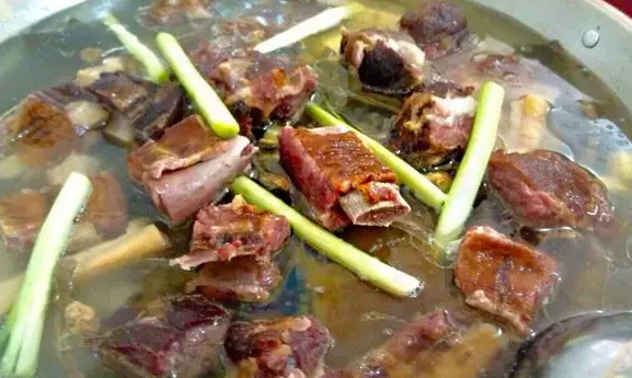 據(jù)老板介紹,臘排骨選用土豬排骨,加入適當(dāng)?shù)氖雏}腌制,有的會加些輔助的酒、白糖、香料等,腌制半個月左右,鹽味已經(jīng)深入骨髓,骨頭與肉的味道融在了一起,水分被大量腌出來,再拿出來放在背陰通風(fēng)處晾干,一到三個月晾曬后排骨就變得“臘味十足”了。而且臘排骨中磷、鉀、鈉的含量豐富,還含有脂肪、蛋白質(zhì)、碳水化合物等元素,吃起來味道醇香,肥不膩口,瘦不塞牙,不僅風(fēng)味獨特,而且具有開胃、去寒、消食等功能。