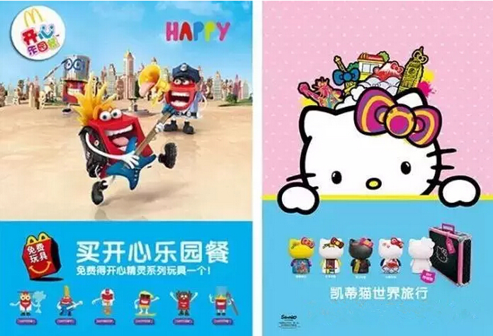 就在去年的六一兒童節(jié)期間,麥當(dāng)勞推出了新玩具,但這次不同往常,并非單推一款。若顧客購買了開心樂園套餐,則可以免費(fèi)得到一個“Happy”玩具;若顧客任意消費(fèi)再加25元則可獲得一款可愛的“Hello Kitty”玩具,甚至加138元可獲一整套。