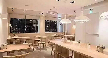 整個店采用了木色+白色的清新LOOK: 純白的工業(yè)礦燈略顯簡約,木質(zhì)的器具古拙卻貼近自然本色,鐫刻在墻上的文字體現(xiàn)了吉野家新生活概念店的理念,不同區(qū)域的燈具都各不相同……