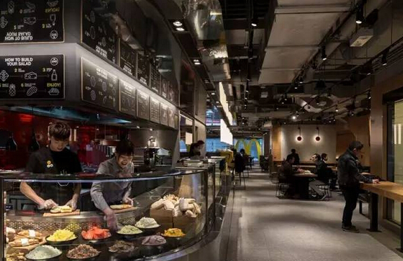 采用了大量開放、通透的設(shè)計,風(fēng)格簡約之余,更提高了食物制作過程的透明度;增添了19種食材的自選沙拉,可自由搭配包括芝士、醬汁、配菜等;店內(nèi)還有送餐服務(wù)、高質(zhì)量的自助點(diǎn)餐機(jī),從冰冷到溫馨,從快餐店變?yōu)樾蓍e餐廳,增加了開放性和互動性。