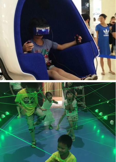 “小螺號”設(shè)計(jì)了多個(gè)親子互動區(qū)域,有繪本閱覽區(qū)、樂高積木區(qū)、歡樂小舞臺、親子手工區(qū)等。無論孩子是活潑還是文靜,都能在餐廳找到滿意的娛樂區(qū)域。而在餐廳多個(gè)互動項(xiàng)目中,最受歡迎的娛樂區(qū)域當(dāng)屬9D虛擬現(xiàn)實(shí)體驗(yàn)倉和“穿越紅外線”。