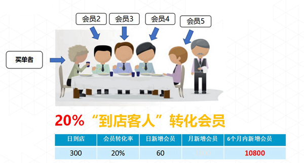 以前辦會員卡都是一個人去買單,他可能只會辦一張會員卡,也許只有一個人有積分,相應的就只有他一個人有優(yōu)惠。對于互聯(lián)網(wǎng)來說,我們希望買單者的陪同者也可以變成我們的粉絲,也就是我們的會員。假如說每天到店的消費者有三百個人,而會員的轉(zhuǎn)化率基本不會低于20%,我們可以通過這樣的方法把20%的人變成你的會員,相當于每天都新增60個,半年就會有10800個,互聯(lián)網(wǎng)會員對于積累粉絲來說是低成本、高效率的,20%是最基本的吸粉比例。