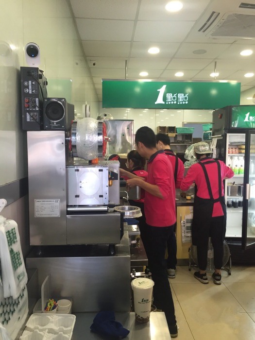 1點點奶茶在門店設(shè)計上大有學(xué)問,不像傳統(tǒng)臺式奶茶店的吧臺所有工具設(shè)備都在一條線上的“一字型”設(shè)計,為求降低做單速度,1點點的吧臺設(shè)計為L型或者U型,并且將操作流程所需要的工具設(shè)備分散,忙碌起來較為不便,經(jīng)常要走來走去,自然降低了效率,但又不會讓消費者覺得服務(wù)有怠慢的地方。