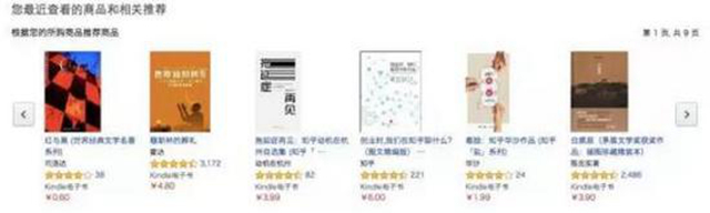 ▲亞馬遜網(wǎng)頁上你最近查看的商品和相關(guān)推薦