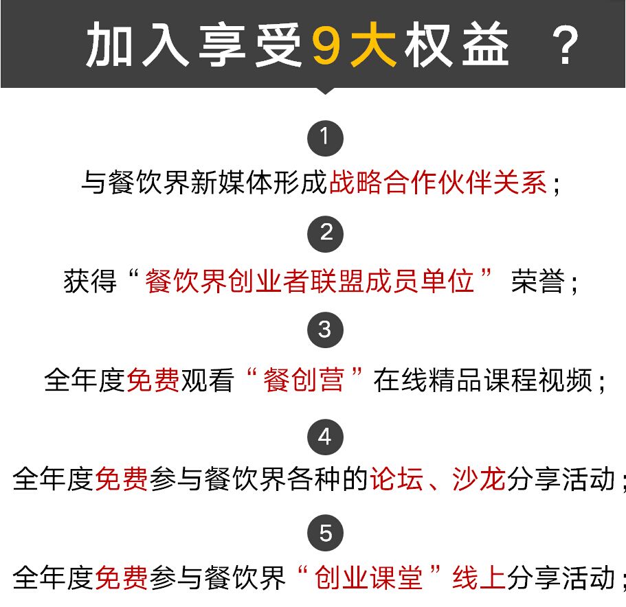 4、全年度免費(fèi)參與餐飲界組織的各種的論壇、沙龍分享活動(dòng);