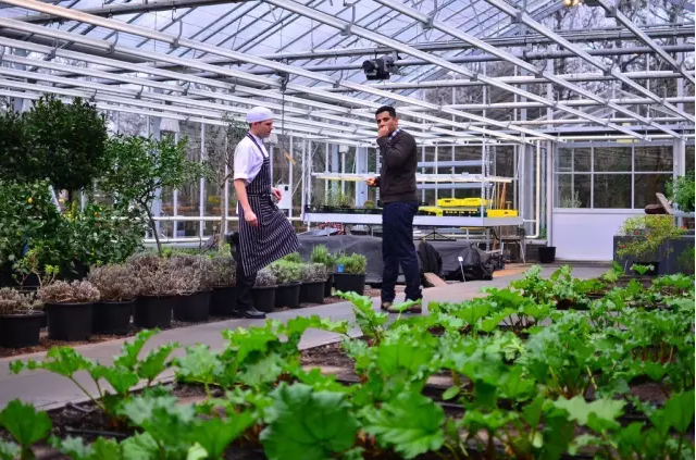 Restaurant De Kas也有自己的溫室和農(nóng)場(chǎng),這里種植了各式蔬菜、香草和可食花卉。因此,餐廳可以自種蔬食,隨采隨烹,每日清晨日出之前,廚師們從種植園摘取最新鮮的蔬菜水果和香草,用于烹飪當(dāng)日美食。