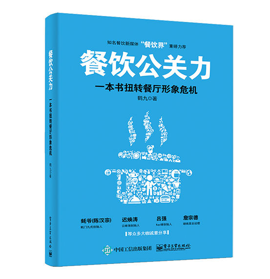 于是,鶴九又將自己在品牌公關(guān)策劃與傳播的經(jīng)驗(yàn)與知識進(jìn)行了系統(tǒng)梳理,并結(jié)合餐飲行業(yè)過往發(fā)生的眾多案例,撰寫了《餐飲公關(guān)力》一書。他希望通過概念解讀、案例剖析、方法論總結(jié),從勢、術(shù)、器三個(gè)層面,直擊餐飲公共關(guān)系命脈,幫助餐飲企業(yè)全方位修煉餐飲公關(guān)力,徹底扭轉(zhuǎn)餐廳形象危機(jī)。