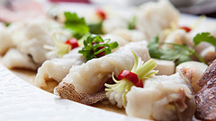 石斑魚主要以天然野生為主,越大肉越嫩,肉細(xì)嫩厚實(shí)、無肌間刺,味鮮美。常用燒、爆、清蒸、燉湯等方法成菜,也可制肉丸、肉餡等。代表菜式有清蒸石斑魚。