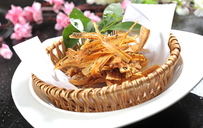 1.牛蒡含有大量的鐵質(zhì),只要曝露在空氣中就會(huì)氧化成黑褐色,為了避免變色,切好的牛蒡要立刻放入清水中浸泡才不會(huì)氧化(將牛蒡絲刨在水里當(dāng)水變成鐵銹色時(shí),必須再換清水,否則不能保持牛蒡的原色),也可將處理好的牛蒡泡入濃度3%的醋水中15分鐘,一來(lái)可使牛蒡的色澤更加潔白,二來(lái)也可保有牛蒡本身的特殊香氣。