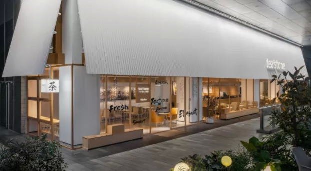 小罐茶現制茶飲對標的是tea'stone。tea'stone是一個成立于2018年的純茶新零售品牌,tea'stone采取的是當下正香的新零售模式,既有零售產品,又有線下體驗空間,線下體驗空間主打200-400平的大店模式,為顧客提供相對安靜質感的社交飲茶空間。在今年3月,tea'stone完成了數千萬元的A輪融資,目前,tea'stone在深圳已有4家門店。