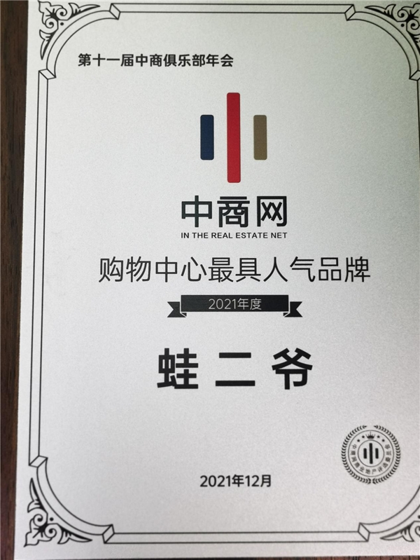 蛙二爺硬核斬獲2021年度購物中心最具人氣品牌獎(jiǎng)專欄