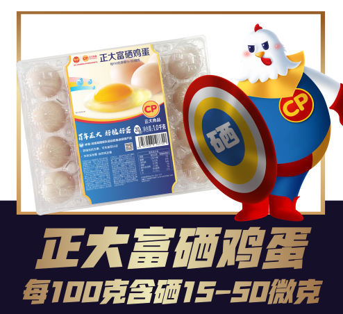 正大富硒雞蛋通過(guò)在雞媽媽的日糧中添加硒元素,再經(jīng)過(guò)雞媽媽身體吸收轉(zhuǎn)化,使硒富集在雞蛋中。每天食用兩枚正大富硒雞蛋,即可滿足人體每日硒攝入需求,做到科學(xué)補(bǔ)硒、營(yíng)養(yǎng)均衡、健康無(wú)憂!