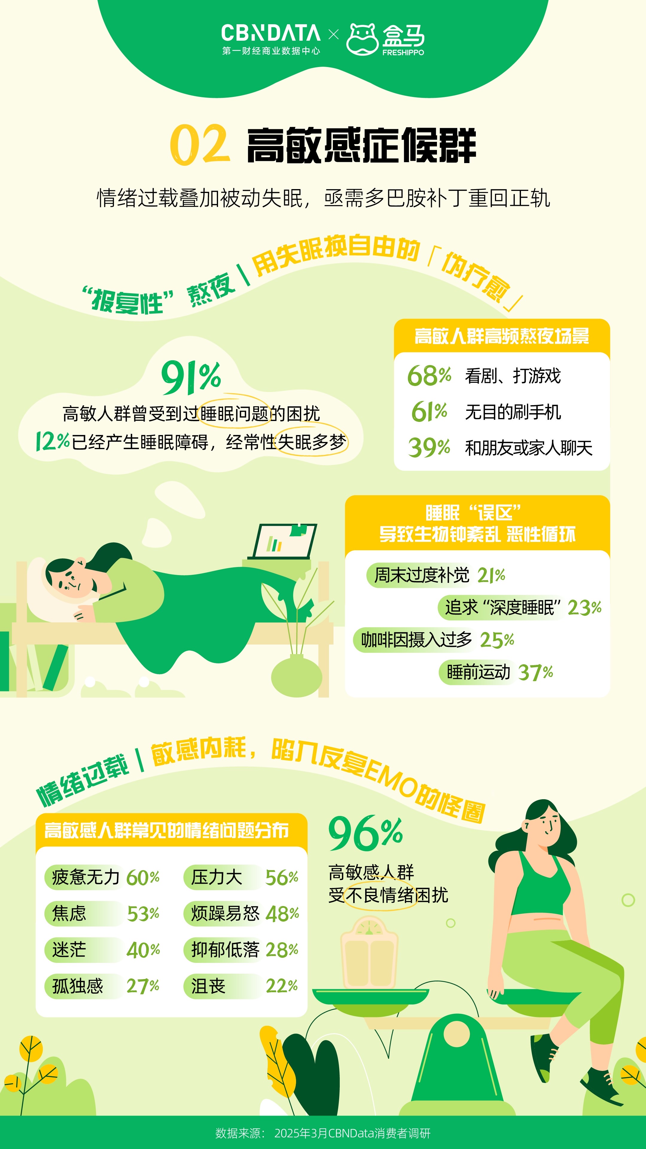 都市生活中,高敏感癥候群是另一類面臨健康挑戰(zhàn)的人群,與朋克加班人不同,他們?cè)谇榫w和睡眠問題上尤為突出。