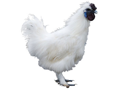 第二,看纓頭,雞的頭頂上長有一叢絲毛形成毛冠,母雞較為發(fā)達,形成一個白色的絨球。