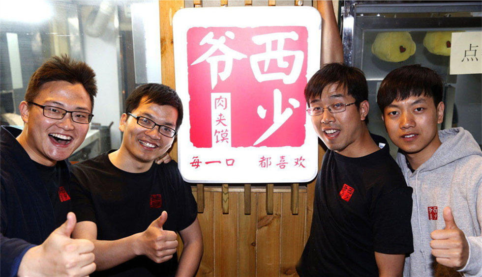 2014年4月,北京五道口,孟兵參與的小店賣出了他們的第一個(gè)肉夾饃。兩年后,在距離這家店15公里的望京SOHO,他們開了一家100多平方米的“西少爺”肉夾饃旗艦店,這是他們上市企業(yè)的13家分店之一。
