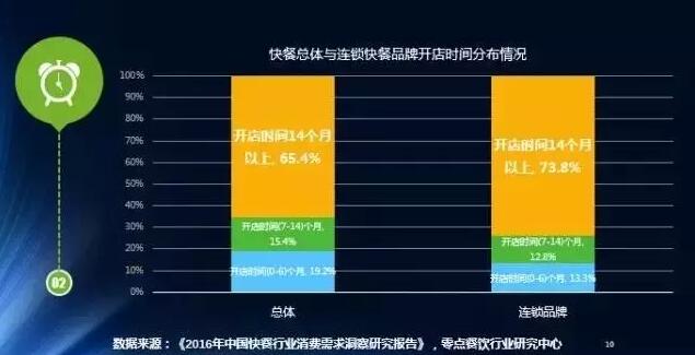 從現(xiàn)存的店鋪來看,連鎖快餐存活2年以上的店的比例高于快餐店總體,所以,連鎖快餐品牌的店鋪在市場(chǎng)上存活得更久。