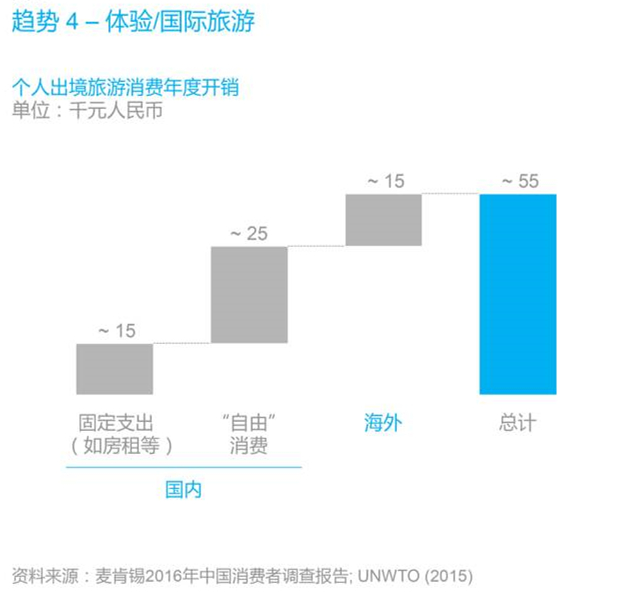 對于7000萬出境游的中國人,海外旅游占到其個人年度開支的25%。從境外消費構(gòu)成看,旅行相關(guān)開銷占到一半,另一半都用在了購物,他們的手表和手袋有一半購自海外,服裝和化妝品是最熱門的購物品類。