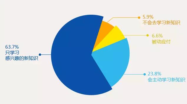 63.7%的 90后青年會愿意學(xué)習(xí)自己感興趣的知識,23.8%會主動學(xué)習(xí)所有新知識。