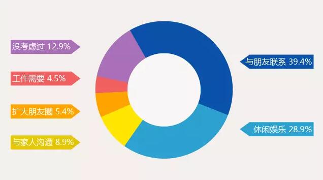 28.9%的90后使用即時通訊軟件是為了休閑和娛樂,娛樂需求僅僅排在通訊需求之后。