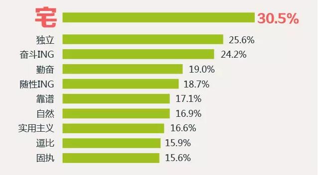 30.5%的90后認(rèn)為自己很宅,62%的90后最喜歡的休閑娛樂方式為宅在家里上網(wǎng),位列90后自我評價中前三的還有獨(dú)立和奮斗。
