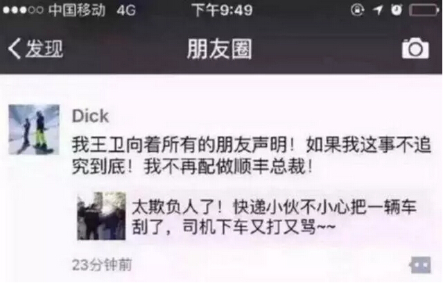 沒錯,你肯定想到了順豐小哥事件。事主是小哥,成就的卻是順豐的品牌形象和CEO王衛(wèi)的“愛民光環(huán)”。