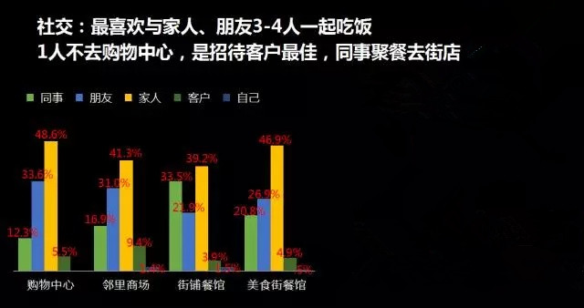 1、無論哪種商圈,最喜歡與家人、朋友2-4人一起吃飯,再次說明餐飲的本質是社交;