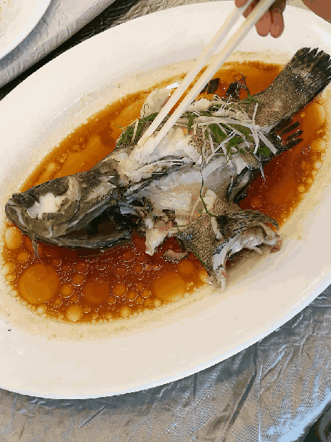 在粵式餐廳里,多見石斑,然而這個不是石斑,是比較少見的青斑魚(價(jià)格上也比石斑要上幾個臺階)。