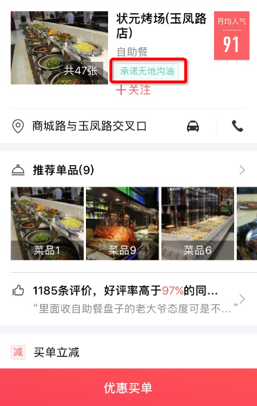 公開資料顯示,口碑目前已經(jīng)接入全國300多個城市的250萬商家。今年五月,口碑發(fā)起了“無地溝油”行動。對于平臺上的餐飲商家,一旦承諾絕對不使用地溝油,其口碑在線店鋪會被打上“無地溝油”的標(biāo)志并重點推薦。