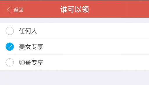 男女紅包是支付寶紅包的又一亮點玩法。用戶在支付寶群里發(fā)送群紅包的時候,可以設置所有人可領、女生可領、男生可領,讓群紅包變的更加有趣。支付寶群紅包也支持同步到支付寶生活圈,生活圈用戶看到后就可領取。有微博網(wǎng)友調侃說,以后紅包都有性別了。